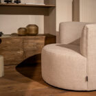Bij Luzia komen comfort en stijl perfect samen! Met de 360° draaifunctie bepaal je moeiteloos jouw ideale zithoek, of je nu ontspant met een goed boek of geniet van je favoriete serie. De gebogen rugleuning biedt ultieme ondersteuning en in combinatie met de Premium Pock-IT Seats© interieurvering ervaar je een heerlijk zitcomfort. Dankzij haar ronde vormen en subtiele details heeft de Luzia een elegante en tijdloze uitstraling die in elk interieur past. Personaliseer haar helemaal naar jouw smaak met keuze uit meer dan 200 trendy meubelstoffen en maak van Luzia jouw nieuwe favoriete fauteuil. UrbanSofa – Jouw stijl, jouw fauteuil.