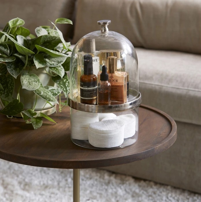 Deze handige stolp met extra opbergruimte kan je gebruiken in elke ruimte. In de keuken met bakbenodigdheden tot de badkamer met cosmetica. De La Pylones Cloche komt overal tot zijn recht. Door de twee verschillende compartimenten hou je gemakkelijk onderscheidt tussen de items. Deze stolp is gemaakt van glas met een zilverkleurige aluminium handvat.