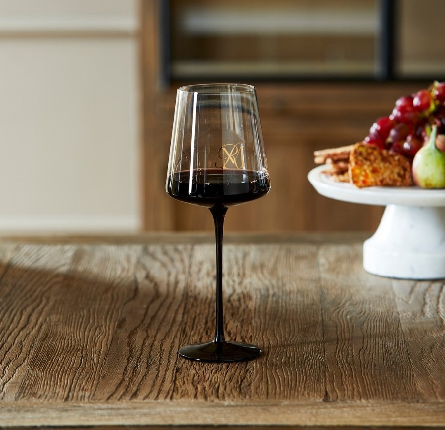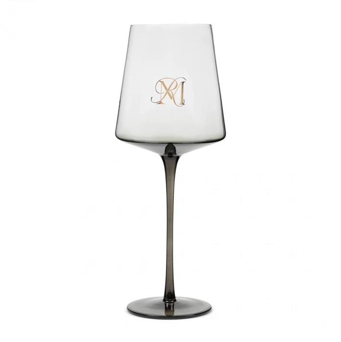 - Dit rode wijnglas, uitgevoerd in smoke glas, straalt verfijning uit met het elegante ontwerp. Het gouden RM-logo biedt een luxueuze afwerking, die een stijlvolle touch toevoegt aan je wijnervaring. Perfect voor het serveren van je favoriete rode wijnen, brengt dit glas een extra vleugje glamour naar elke gelegenheid. Ideaal voor een elegante en geslaagde wijnavond.