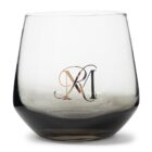 - Dit waterglas, gemaakt van smoke glas, combineert een verfijnd ontwerp met luxe details. Het gouden RM-logo voegt een exclusieve afwerking toe, waardoor het glas een elegante aanvulling is op je tafelsetting. Perfect voor het serveren van water, biedt dit glas een chique en stijlvolle manier om je dranken te presenteren, en voegt het een vleugje glamour toe aan elke gelegenheid.